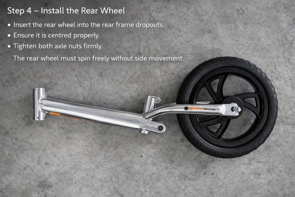 • All bolts tightened securelyWheels spin freelyNo wobblingHandlebar aligned straightSeat firmly secured
